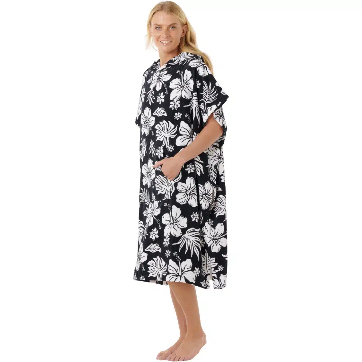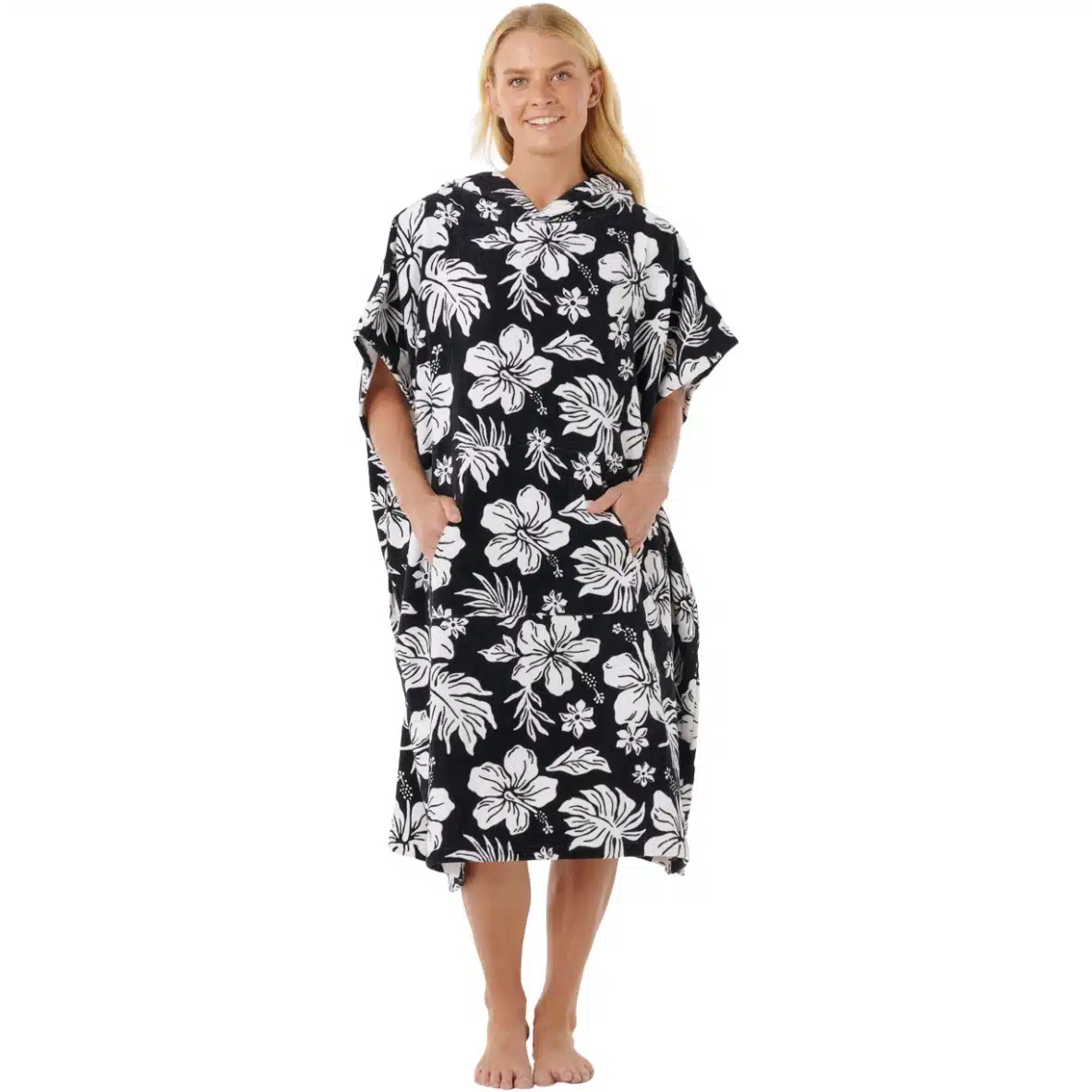 Enjoy the comfort and functionality of the Mixed Hooded Towel. This standard fit hooded towel with sleeves is perfect for lounging at the beach or by the pool. It features a woven construction and offers a kanga pocket and side change pockets for added convenience. The side splits allow for easy movement, while the logo patch adds a touch of branding. With a length from the top shoulder point of 104cm, this hooded towel provides ample coverage.