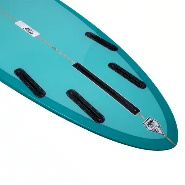 The five-fin box system on the tail section that’s Futures compatible offers plenty of tuning options. Combine a center fin with side bites or go quad on average-to-smaller days. Keep the thruster setup for the bigger days when conditions allow for committed turns.