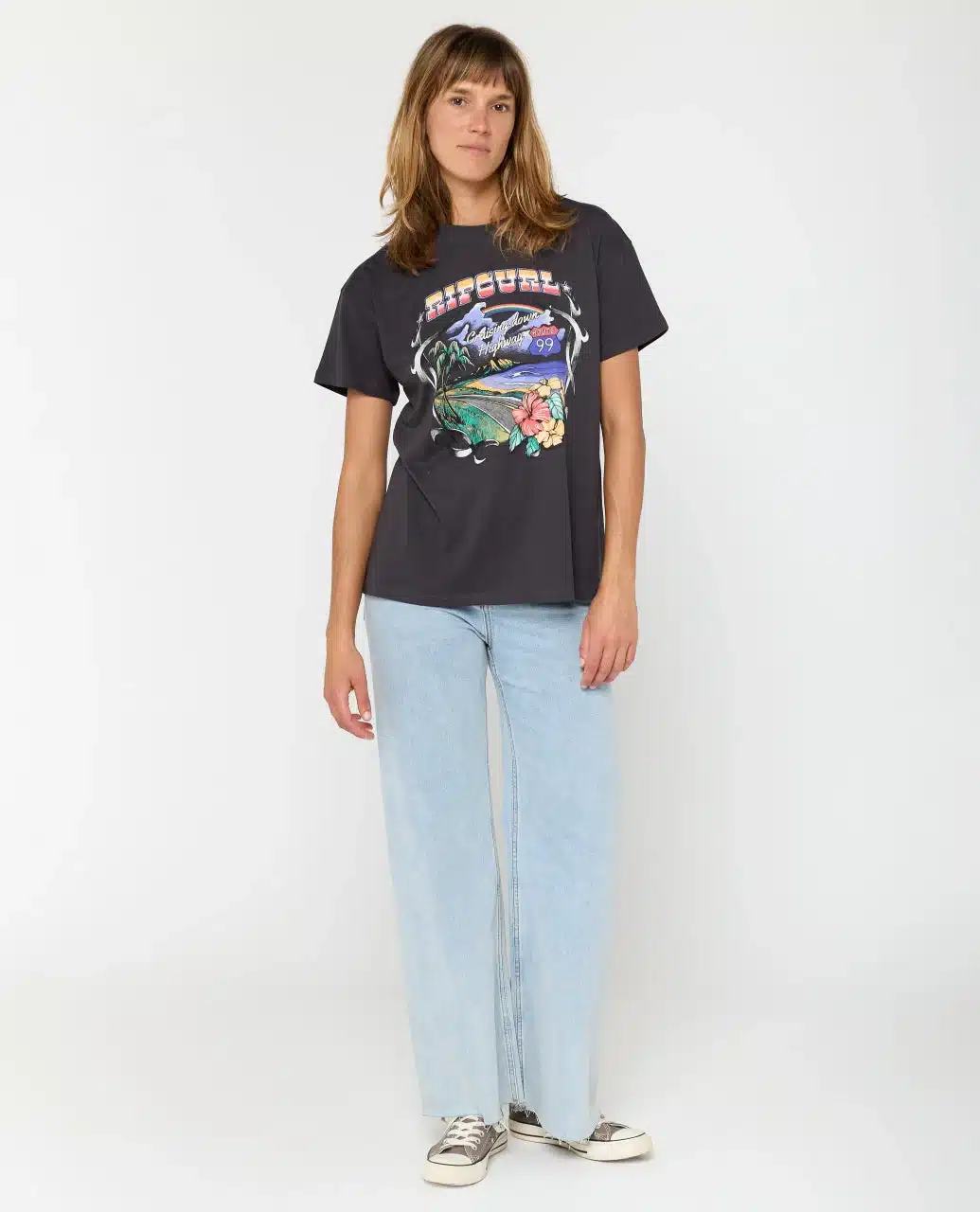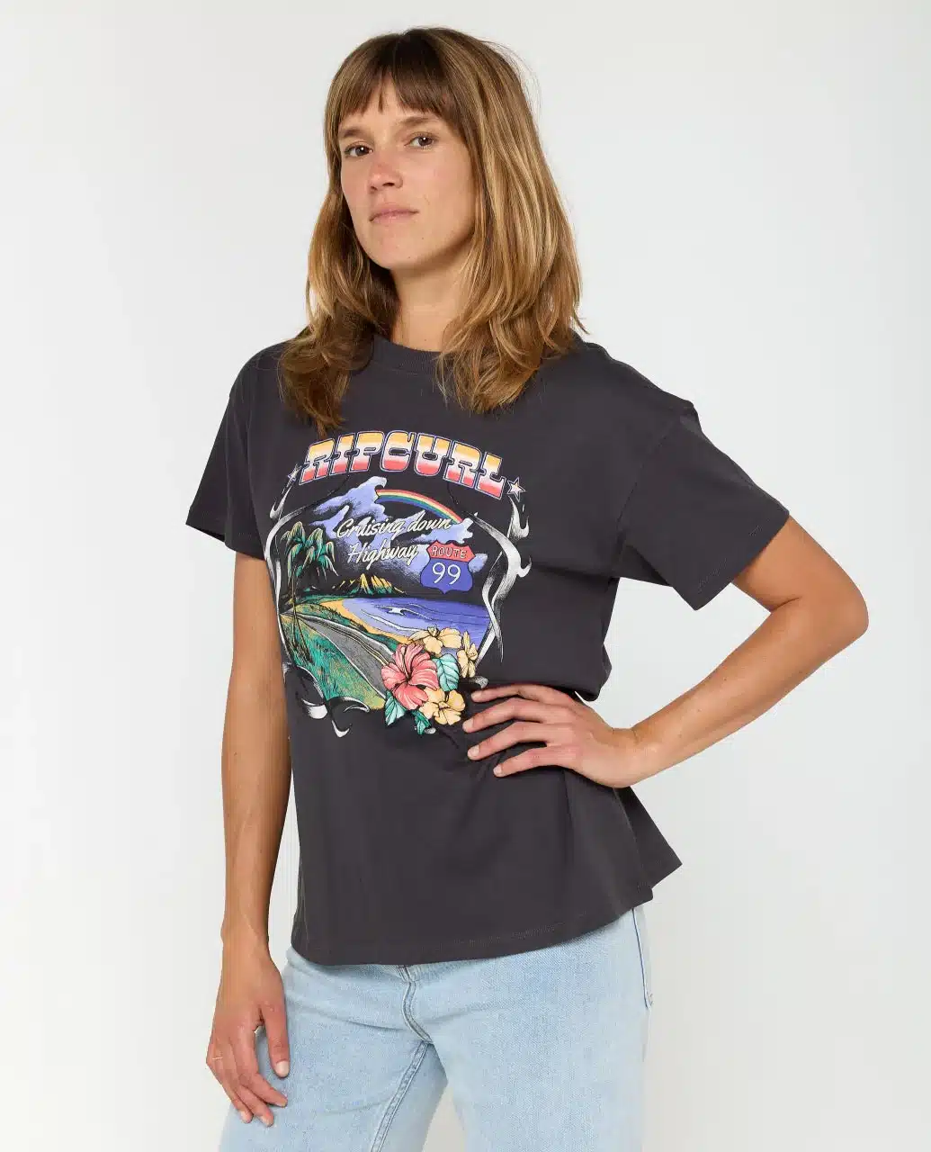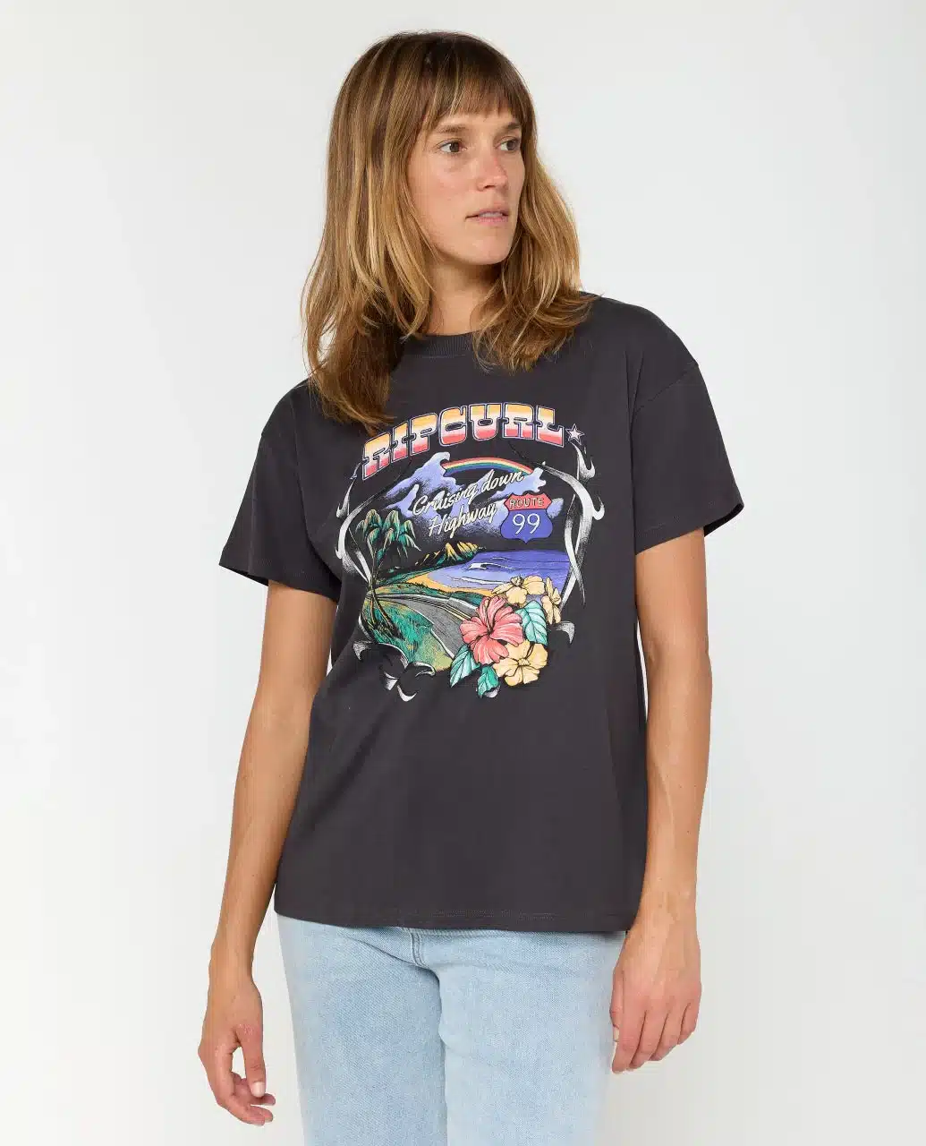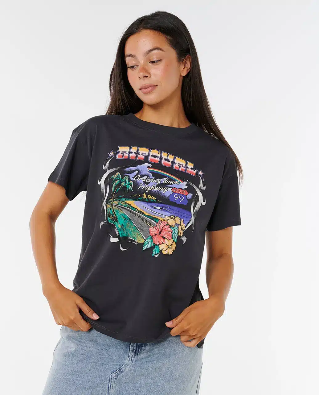 Stone-washed and relaxed, the Pacific Rider Relaxed Tee sports a laid-back fit with short sleeves and bold front print. A woven flag label and inner neck print add signature surf details, making it a go-to for easy days from beach to street.