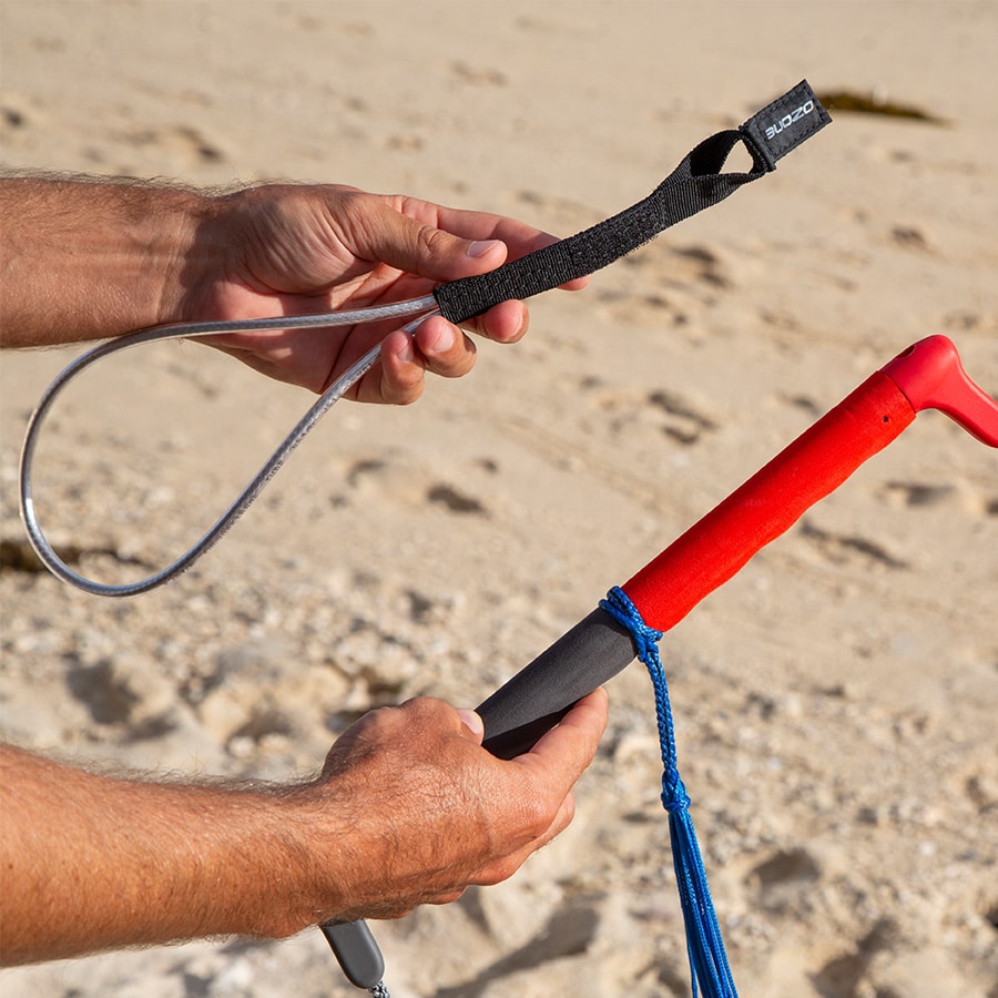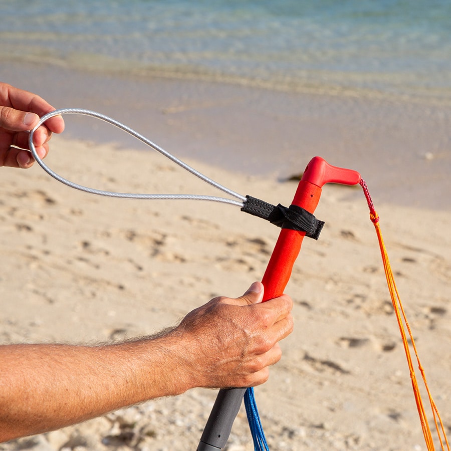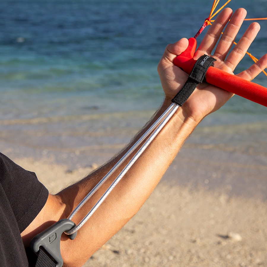 Attachment System: Self-tightening “loop-on” design, secured with Velcro. Fit to a wing handle/boom or parawing control bar in seconds. No components to attach/remove