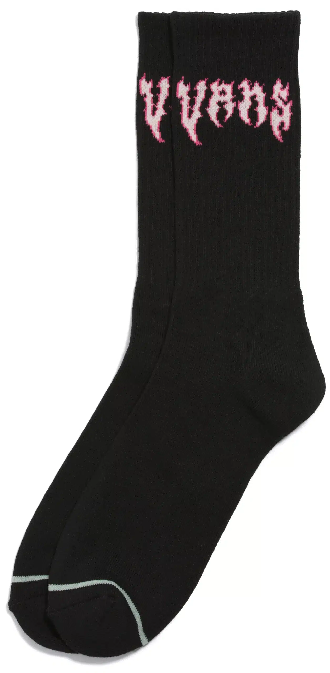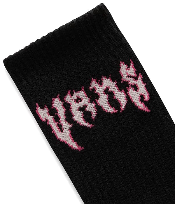 The Sunface Crew Sock is a crew sock that features jacquard art of a sun and Vans logo at the opening.
