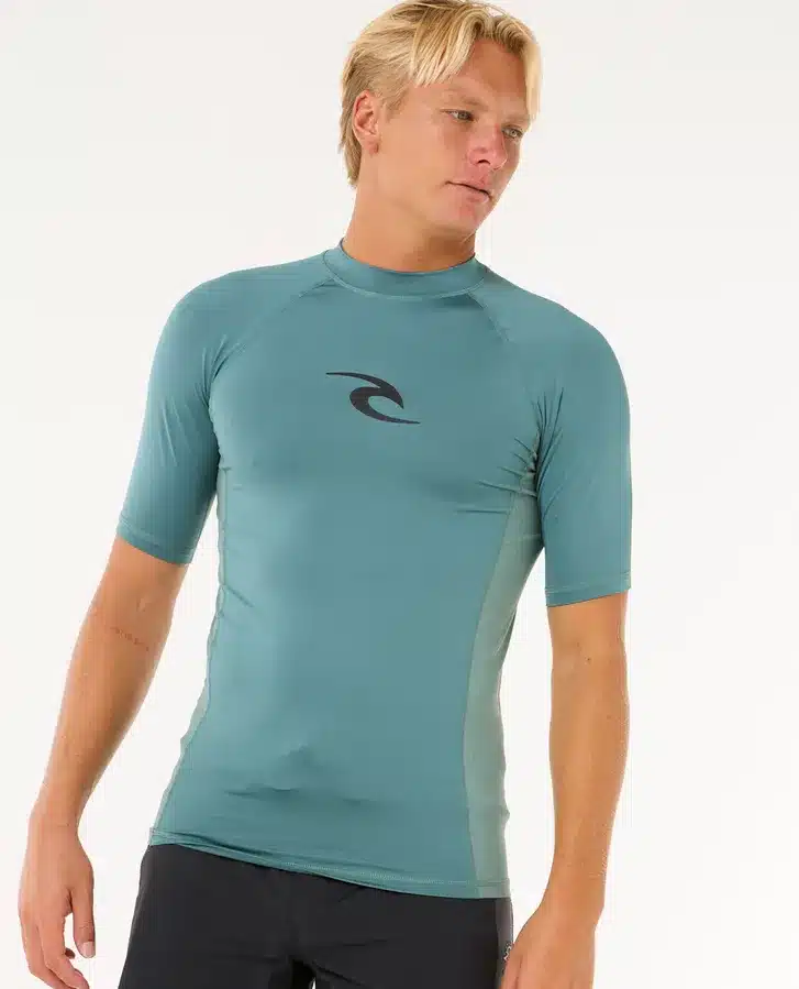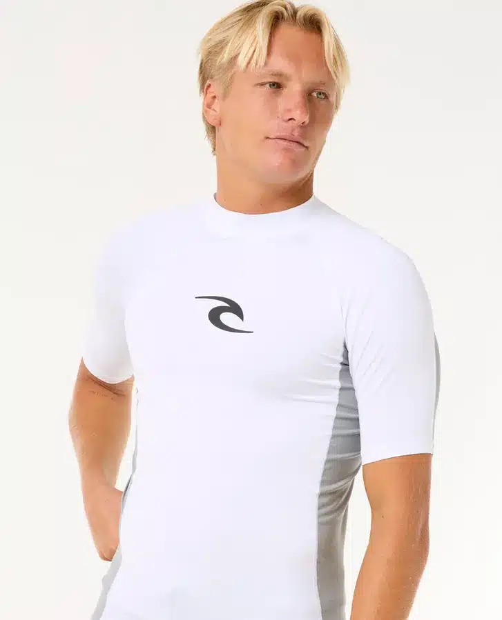 Heat transfer,Front and back print,Flatlock stitch detail,Elastic boardshort loop,UPF 50+UV sun protection rash vest